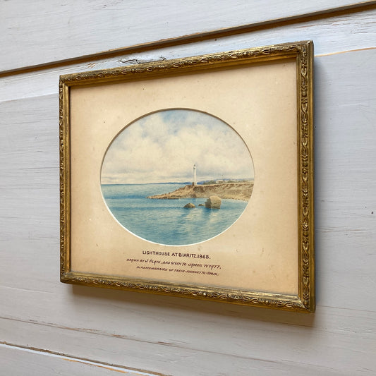 Lighthouse at Biaritz France - A Small Framed Watercolour of Biaritz Lighthouse Dated 1865