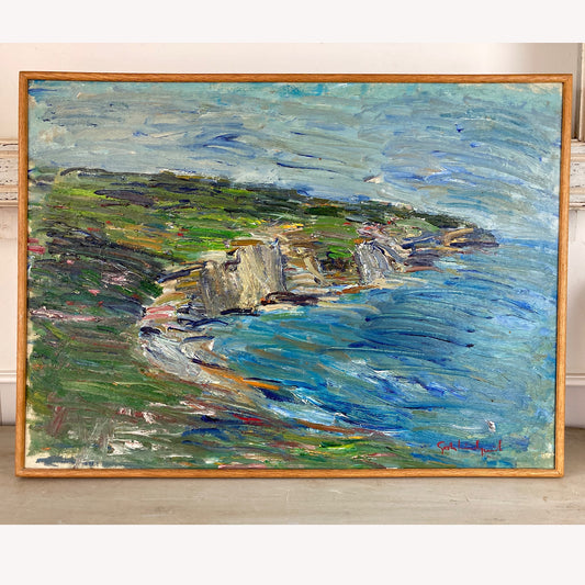Impressionist Coast - Large Swedish Coastal Landscape of Falaise de Pourville Original Framed Oil Painting in the Scandinavian Modern Style